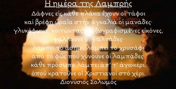«Ανάσταση! και μέσα στην καρδιά μου/ που μαύροι τη μαράνανε χειμώνες/ μιας άνοιξης η αυγή γλυκοχαράζει/ κι ανθίζουν μενεξέδες κι ανεμώνες».